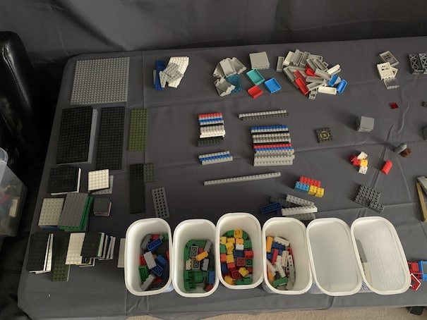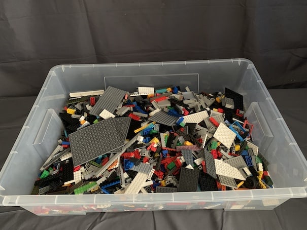 So I thought I could use the non-LEGO bricks and pieces that I had from my bulk LEGO purchases that were enough to fill a big tub: