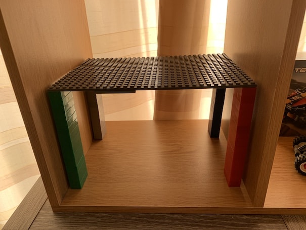 and 2x4 bricks as the legs. Each leg is a different colour, but I’m OK with that.